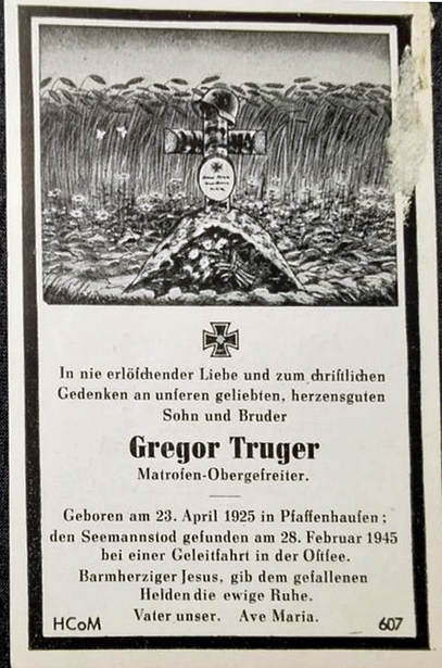 Matrosen-Obergefreiter | TRUGER | Gregor | 23.04.1925 Pfaffenhausen | 28.02.1945 Geleitfahrt, Ostsee |