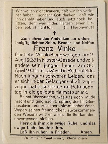 VINKE | Franz | 02.08.1928 Kloster Oesede, Georgsmarienhütte |
