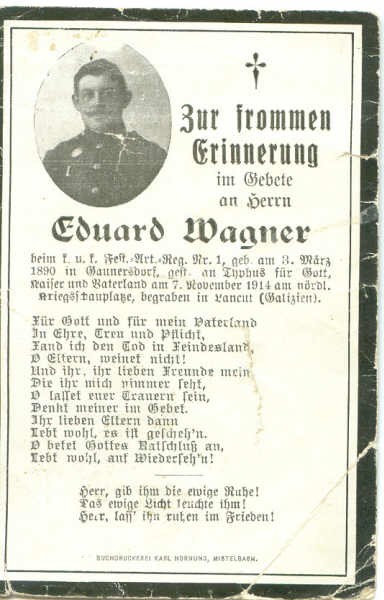 WAGNER | Eduard | 03.03.1890 Gaunersdorf, heute Gaweinstal |