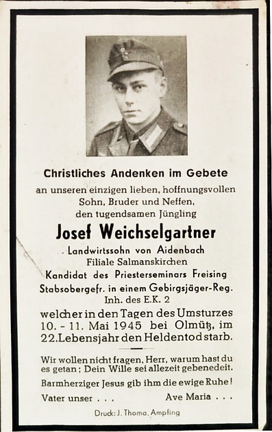 Stabsobergefreiter | WEICHSELGARTNER | Josef | Salmannskirchen | 10.-11.05.1945 bei Olmütz | Gebirgsjäger-Regiment |