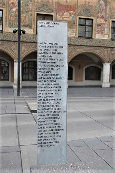 Gedenktafel am Hans-und-Sophie-Scholl-Platz.