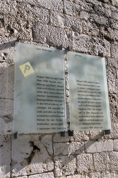 Über 1500 Frauen und Männer aus Polen, davon viele noch Kinder, wurden unter dem nationalsozialistischen Sonderrecht für Zwangsarbeiter aus Lodz in die Wilhelmsburg verschleppt. Sie wurden in Lodz und Ulm zur Kriegsproduktion elektronischer Röhren für die Firma Telefunken gezwungen.