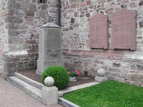 Denkmal u. Gedenktafeln für die Gefallenen und Vermissten beider Weltkriege im Friedhof an der Kirche Mariä Geburt.