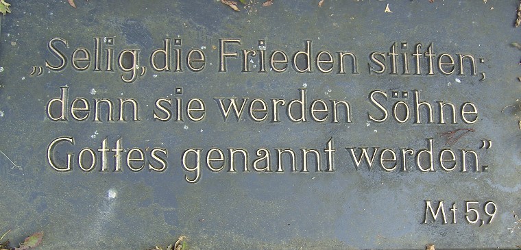 Vor dem Denkmal ist eine Tafel mit Inschrift im Boden eingelassen.