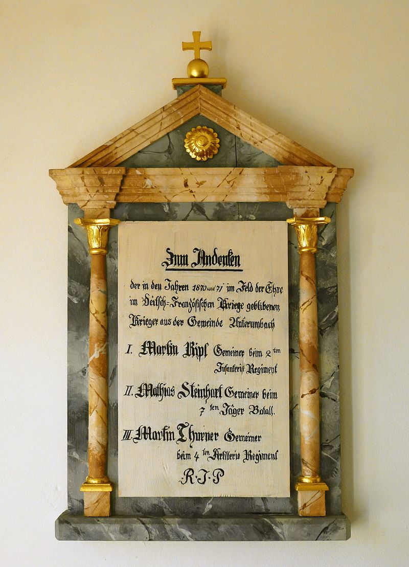 Kunstvoll gestaltete Tafel in der Filialkirche St. Martin für den Feldzug 1870/71.