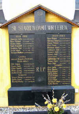 Gedenktafel außen an der Rückseite der Kirche für beide Weltkriege.