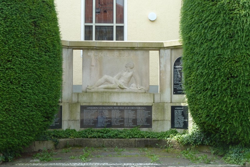 Denkmal, unmittelbar bei der Katholischen Kirche Herz-Jesu.