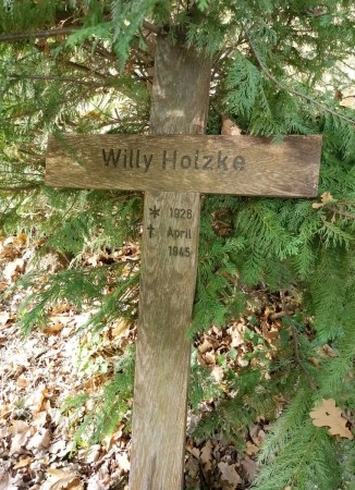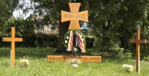 Ebenfalls in Sichtweite der Kirche stehen (zumindest 2008) drei einfache Holzkreuze (Zweiter Weltkrieg). Das in der Mitte ist wie ein Eisernes Kreuz gestaltet und trägt die Inschrift.