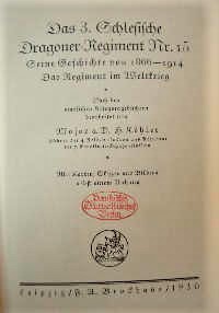 Das 3. Schlesische Dragoner-Regiment Nr. 15. Seine Geschichte von 1866-1914. Das Regiment im Weltkriege.