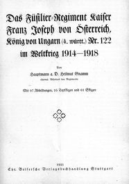 (4. Württembergisches) Nr. 122 im Weltkrieg 1914–1918. Stuttgart 1921. (siehe Foto)