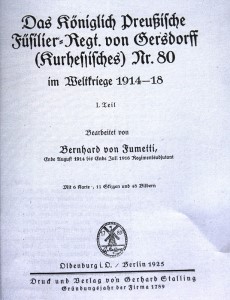 Bearbeitet von Bernhard von Fumetti, Ende August 1914 bis Ende Juli 1916 Regimentsadjutant, Oldenburg i.O./ Berlin 1925, Verlag Gerhard Stalling.