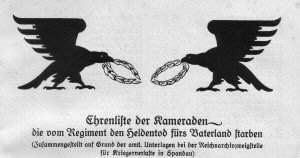 Ehrentafel, zusammengestellt auf Grund der amtlichen Unterlagen bei der Reichsarchivzweigstelle für Kriegsverluste in Spandau.