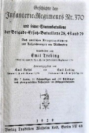 Geschichte des Infanterie-Regiments Nr. 370 und seiner Stammbataillone der Brigade-Ersatz-Bataillone 28, 43 und 79 nach amtlichen Kriegstagebüchern und Aufzeichnungen von Mitkämpfern bearbeitet von Emil Trebing, Oblt. d. Res. a. D. im Infanterie Regiment 370, Berlin 1929.
