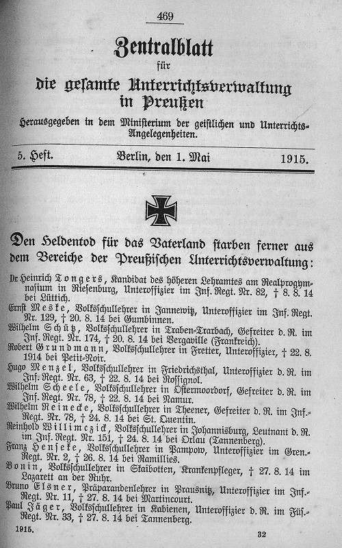Den Heldentod für das Vaterland starben aus dem Bereich der Preußischen Unterrichtsverwaltung:
