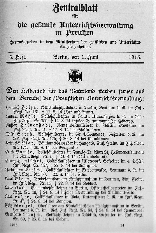 Den Heldentod für das Vaterland starben aus dem Bereich der Preußischen Unterrichtsverwaltung: