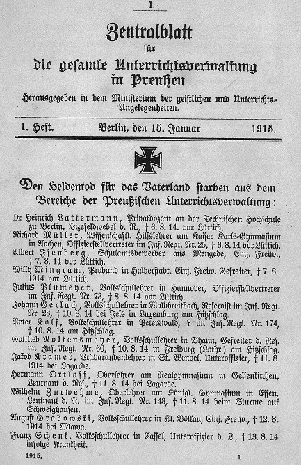 Den Heldentod für das Vaterland starben aus dem Bereich der Preußischen Unterrichtsverwaltung:
