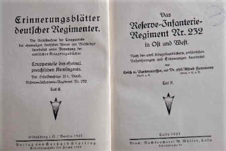 Das Reserve-Infanterie-Regiment Nr. 232 in Ost und West. Nach den amtl. Kriegstagebüchern, persönlichen Aufzeichnungen und Erinnerungen bearbeitet von Erich v. Bartenwerffer, Oberst a.D. und Dr. phil. Alfred Herrmann, Oberst d.R.a.D. Aus der Schriftenfolge „Erinnerungsblätter deutscher Regimenter“.