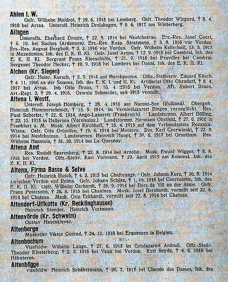 Namen der Gefallenen: