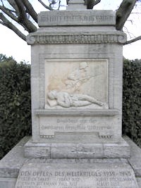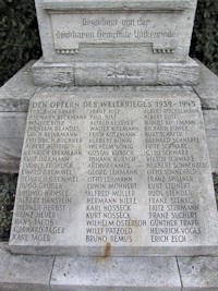 Eine vorne auf den Denkmalsockel gelegte Platte enthält weitere 60 Namen von im Zweiten Weltkrieg Gefallenen.
