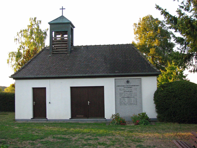 Die Ehrentafel für die Orte Volkersgau, Putzenreuth und Waikersreuth ist an der Friedhofskapelle angebracht.