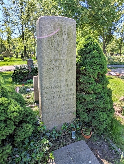 Nach unten genannter Quelle liegen dort noch bestattet die zweite Ehefrau von Anton Schmidt, sowie eine weitere Person. Das Besondere ist jedoch die am unteren Ende der Säule unten genannte Inschrift. Sie weist dieses Grabmal als Mahnmal für die in der NS-Zeit verfolgten Sinti und Roma aus und ist daher von Gesetz wegen erhaltungswürdig.