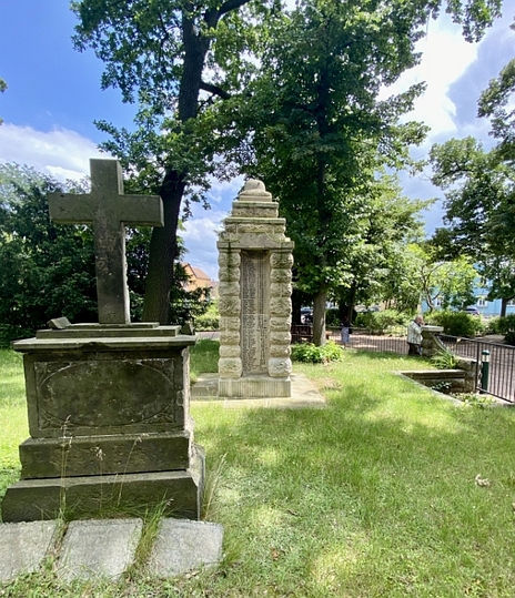 Das Denkmal steht auf dem Kirchhof, gegenüber dem Zentralgasthaus.