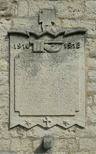 Die Gedenktafel für den 1. Weltkrieg an der Außenmauer der Kirche ist leider auf Grund von Verwitterung nicht mehr lesbar.