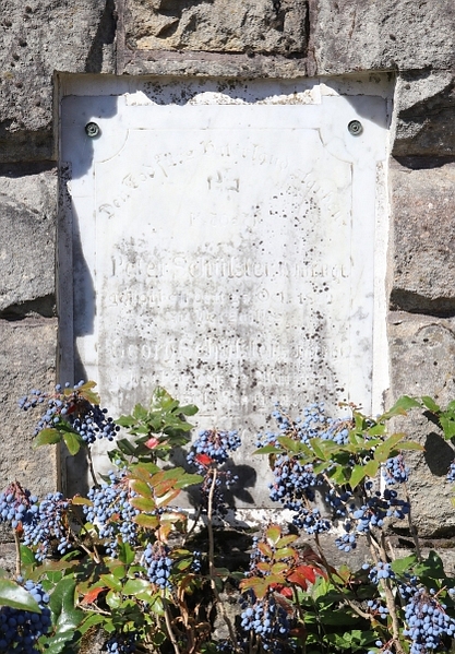 An der Rückseite ist eine weiße Steintafel mit den Daten der Gefallenen des Feldzuges 1870/71 eingesetzt.