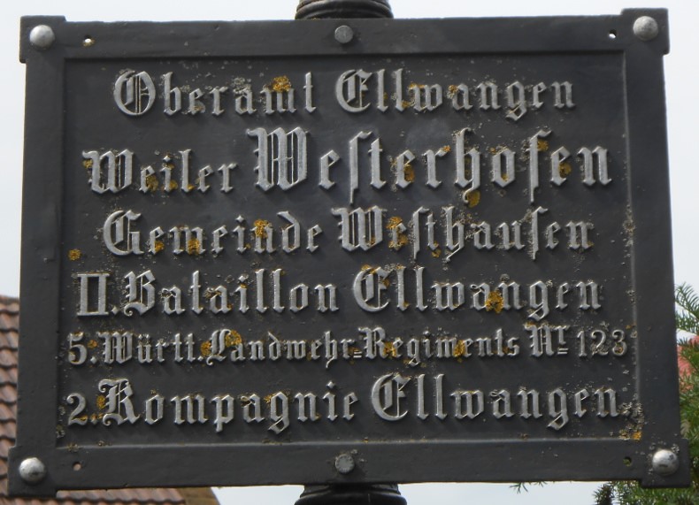 In der Nähe in einer Nebenstraße ein Schild des Oberamt Ellwangen.