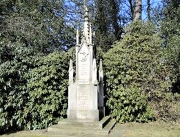 Es ist gestaltet in Form eines neogotischen Türmchens (vier Inschriftenseiten; Beschädigungen).