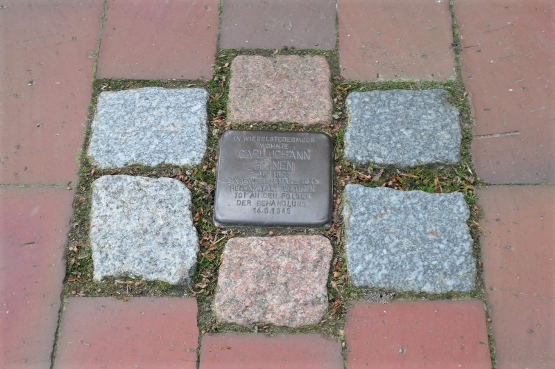 Dieser Stolperstein in Wiefelstede wurde am 23.10.2017 vom Künstler Gunter Demnig persönlich vor dem Haupteingang des Rathauses verlegt.