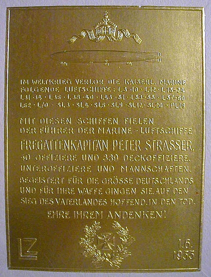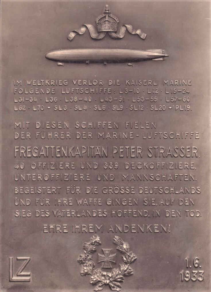 Marineluftschiffer-Ehrentafel. Urspr. Standort: Kaserne am Mühlenweg, Block 3 "Frauenlob", Traditionsraum. Stifter der Bronzetafel: Luftschiffbau Zeppelin GmbH, Friedrichshafen,
