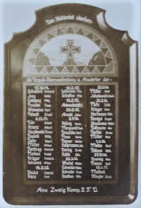 dieser Karte ist folgender Text zu lesen: "Zur Erinnerung an die Gefallenen der Kompagnie wurde umseitige Ehrentafel angefertigt und im Korridor der Kaserne angebracht".