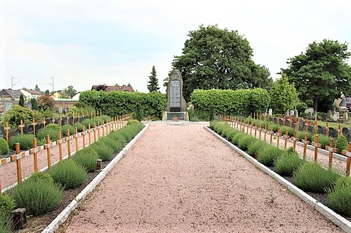 Kriegerdenkmal auf dem Friedhof für die Opfer des Ersten Weltkrieges. Gedenkplatten für die Opfer des Deutsch-Französischen Krieges 1870/71,