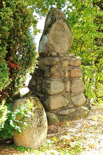 Denkmal zum Andenken an die Völkerschlacht 1813 sowie an den Ersten und Zweiten Weltkrieg aus Natursteinen/Findlingen