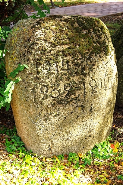 Später wurde rechts neben das Hauptdenkmal ein Findling mit den Daten der Weltkriege aufgestellt.