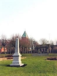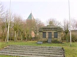Im Park an der Kirche steht eine Stele für die Gefallenen der Kriege 1848-50 und 1870/71.