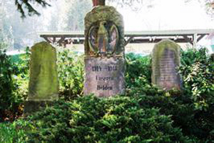 Stele mit steinernem Adler, begleitet von zwei Steinen mit den Namen, unmittelbar südlich der Wolfersdorfer Hauptstraße.