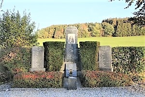Im Friedhof: Denkmal bestehend aus drei Steintafeln.