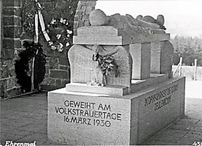 Nach 1945 schwere Beschädigungen, Sarkophag und Kreuze (in Form des Eisernen Kreuzes) in den seitlichen Öffnungen wurden entfernt. Fortschreitender Verfall mit Einsturzgefahr bis 1993,