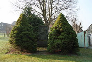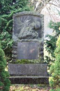 Relief eines Soldaten auf einem zweistufigem Sockel mit Namenstafel neben der B175 an der Einmündung der L1083.
