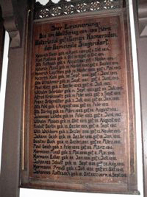 Gedenktafeln 1. und 2. Weltkrieg in der Kirche.