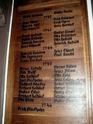 Die Namen befinden sich aber auch auf einer Gedenktafel in der Kirche, zusätzlich mit Geburtsdaten.