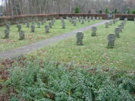 In diesem Bereich des Friedhofs auch Kriegsgräber mit Sandsteinkreuzen, zumeist aus den letzten Tagen des Kriegsjahres 1945.