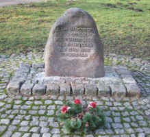 Weiter ein Findling mit der Inschrift zur Erinnerung an den Zweiten Weltkrieg und eine Eiche zur Erinnerung an die Deutsche Einheit.