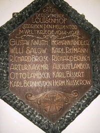 Wandtafeln für Gefallene des Ersten Weltkriegs in der Kirche für das Kirchspiel Altwigshagen und Louisenhof