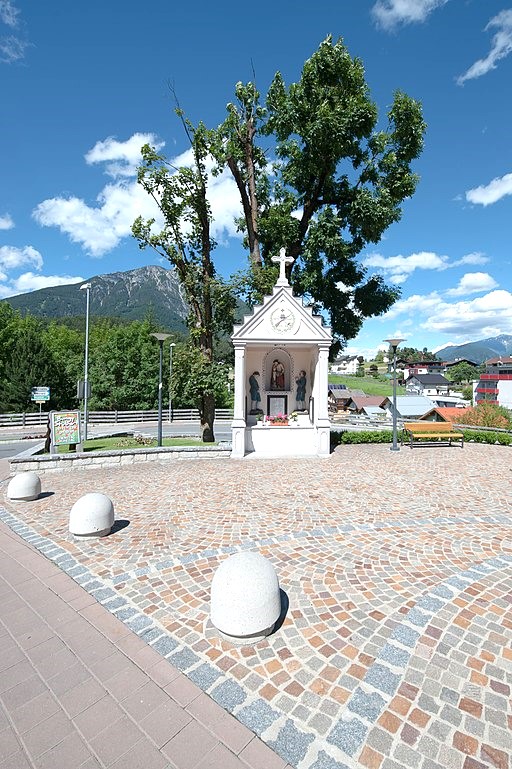 Beim Hotel Post, vorne offene Kapelle, in der Nische Jesus in Fesseln, daneben zwei betende Soldaten. Auf der Frontseite des Altars drei Gedenktafeln (Zweiter Weltkrieg), am Altar drei angelehnte Tafeln (Erster Weltkrieg), seitlich je ein Wandgemälde, bei einen darunter eine Zusatztafel. Zusätzlich Hinweise zu Soldaten von diversen privaten Gedenksteinen