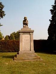Sandsteinquader, obendrauf ein kniender Soldat in Uniform, Gewehr und Stahlhelm.