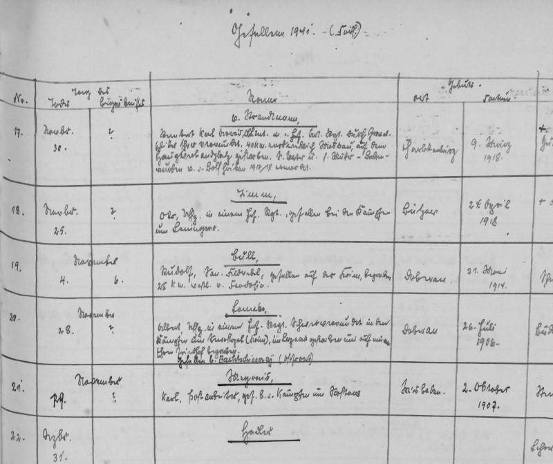 | Obltnt | STRANDMANN | Rembert Karl Boris von | 09.03.1918 Charlottenburg | 30.11.1941 HVPl Dedewo |