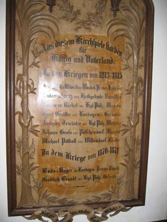 Gedenktafel für die Gefallenen des 1. Weltkriegs (verschwunden).